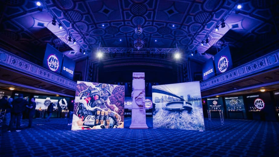 Pinpoint took on the prepress work, printing, and installation of Casio G-Shock graphics and banners for the marquee, balconies, main stage, and more.